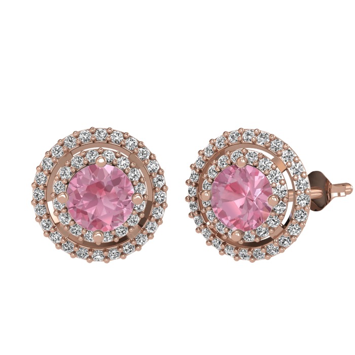 Pembe kuvars ve beyaz zirkon 14 ayar rose altın küpe