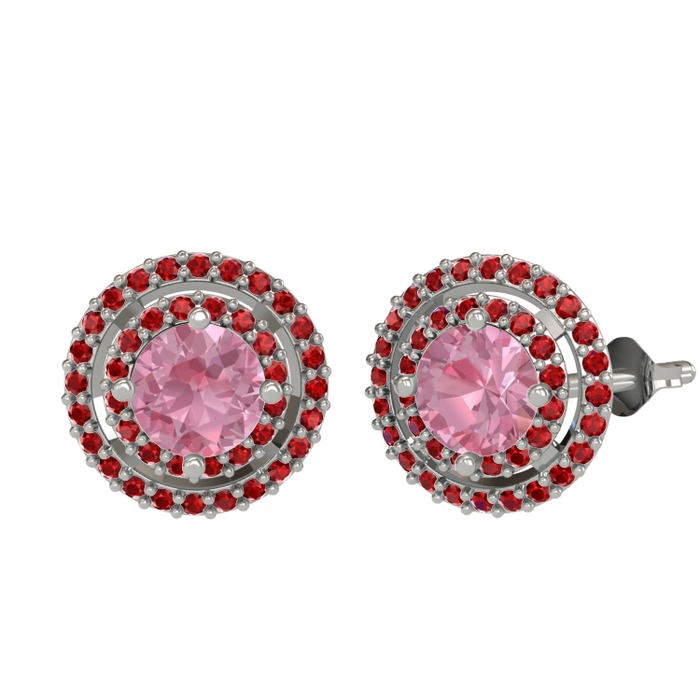 Pembe kuvars ve garnet 925 ayar gümüş küpe