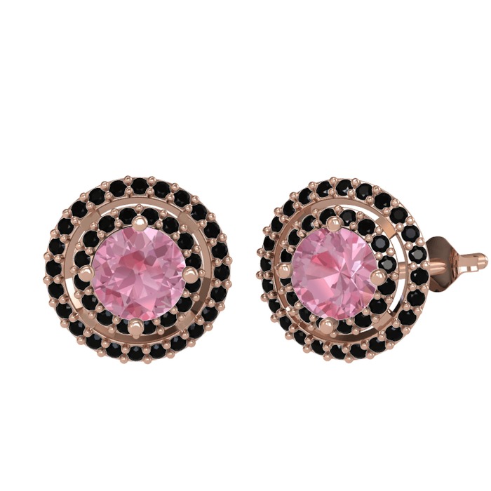 Pembe kuvars ve siyah zirkon 14 ayar rose altın küpe