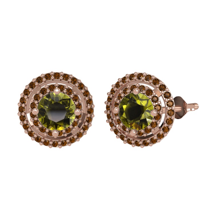 Peridot ve dumanlı kuvars 14 ayar rose altın küpe