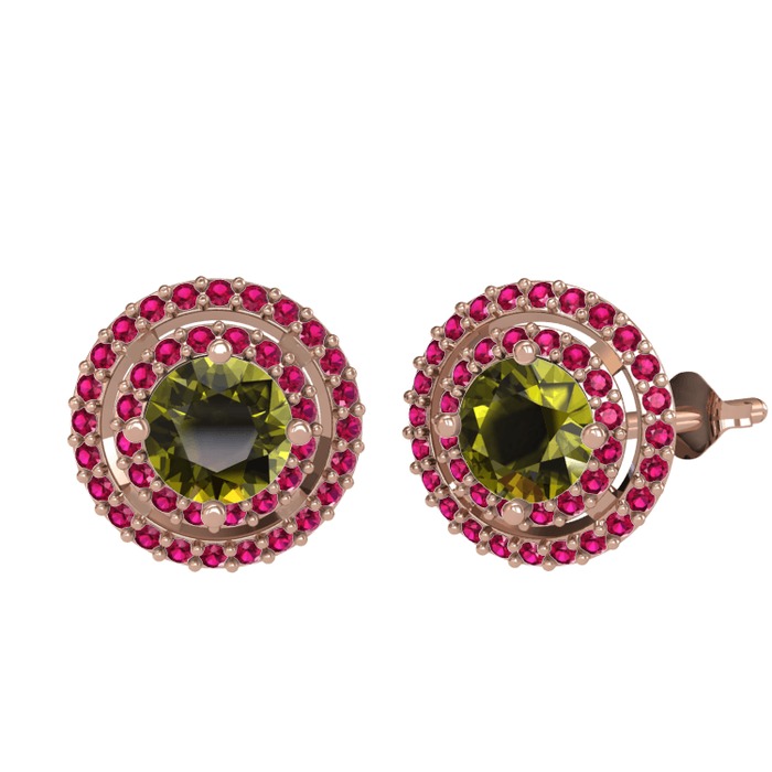 Peridot ve rodolit garnet 14 ayar rose altın küpe