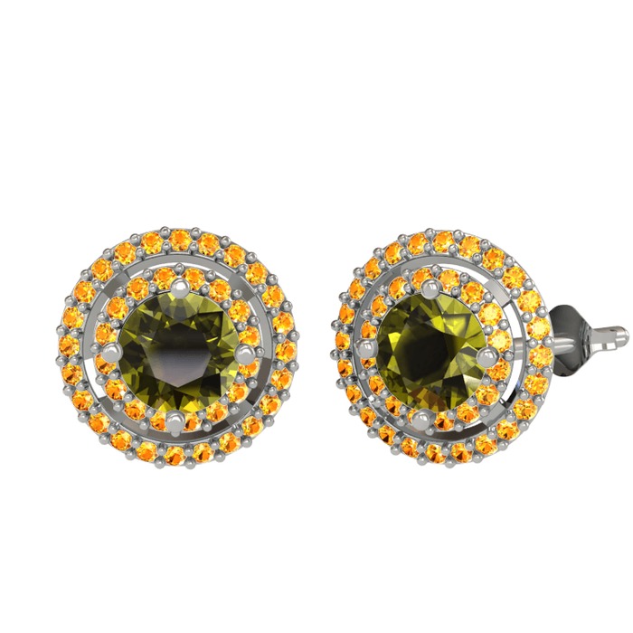 Peridot ve sitrin 8 ayar beyaz altın küpe