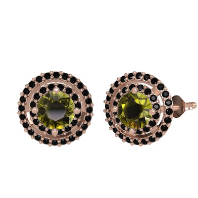 Peridot ve siyah zirkon 8 ayar rose altın küpe