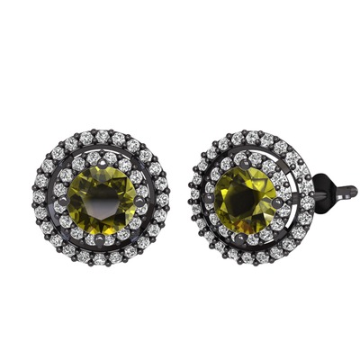Peridot ve swarovski 925 ayar siyah rodyum kaplama gümüş küpe