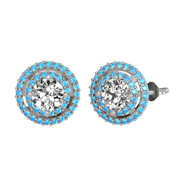 Pırlanta ve akuamarin 8 ayar beyaz altın küpe (1.84 karat)