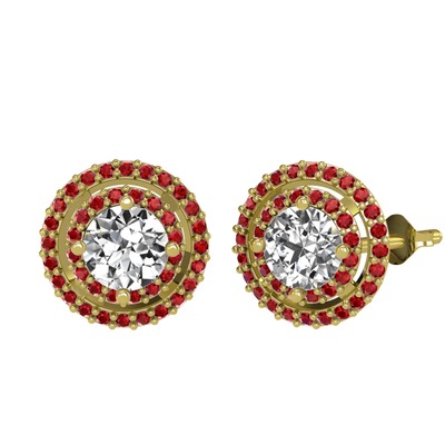 Pırlanta ve garnet 925 ayar altın kaplama gümüş küpe (1.84 karat)