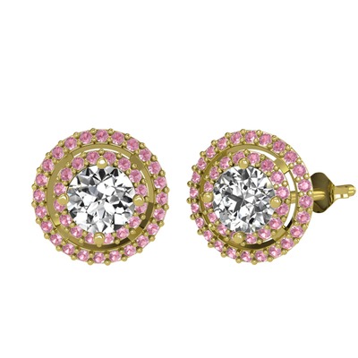 Pırlanta ve pembe kuvars 14 ayar altın küpe (1.84 karat)