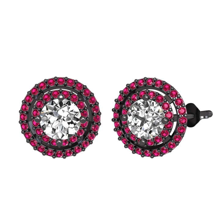 Pırlanta ve rodolit garnet 925 ayar siyah rodyum kaplama gümüş küpe (1.84 karat)