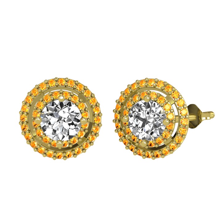Pırlanta ve sitrin 8 ayar altın küpe (1.84 karat)