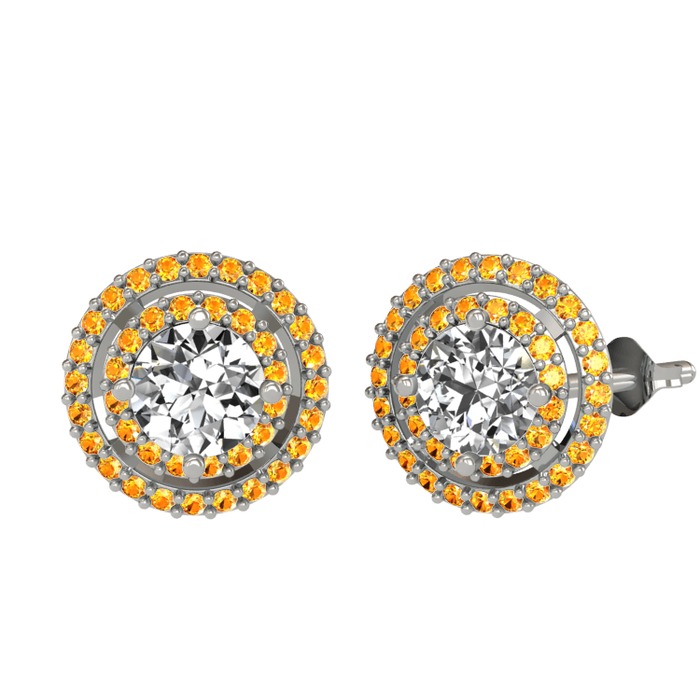 Pırlanta ve sitrin 925 ayar gümüş küpe (1.84 karat)