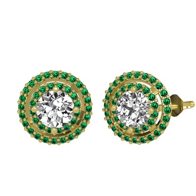 Pırlanta ve yeşil kuvars 925 ayar altın kaplama gümüş küpe (1.84 karat)
