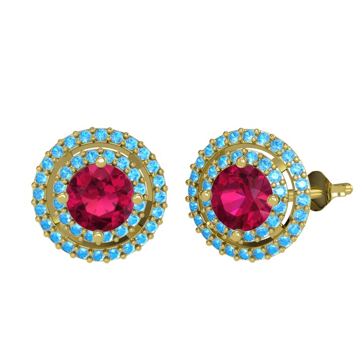 Rodolit garnet ve akuamarin 14 ayar altın küpe