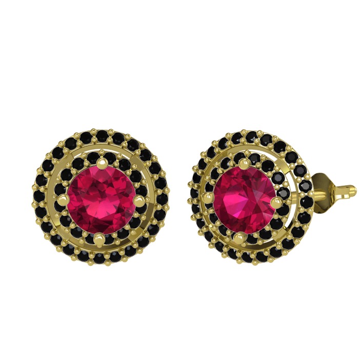 Rodolit garnet ve siyah zirkon 14 ayar altın küpe