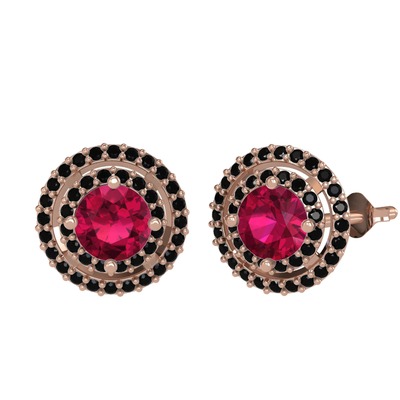 Rodolit garnet ve siyah zirkon 8 ayar rose altın küpe