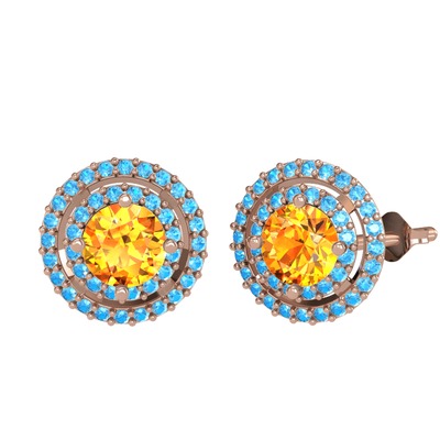 Sitrin ve akuamarin 14 ayar rose altın küpe