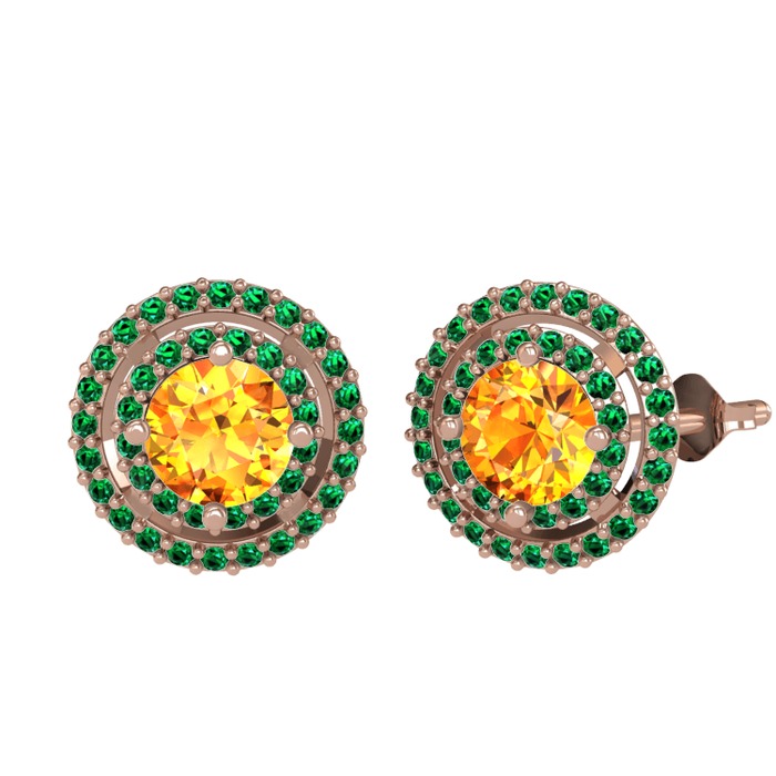 Sitrin ve yeşil kuvars 18 ayar rose altın küpe