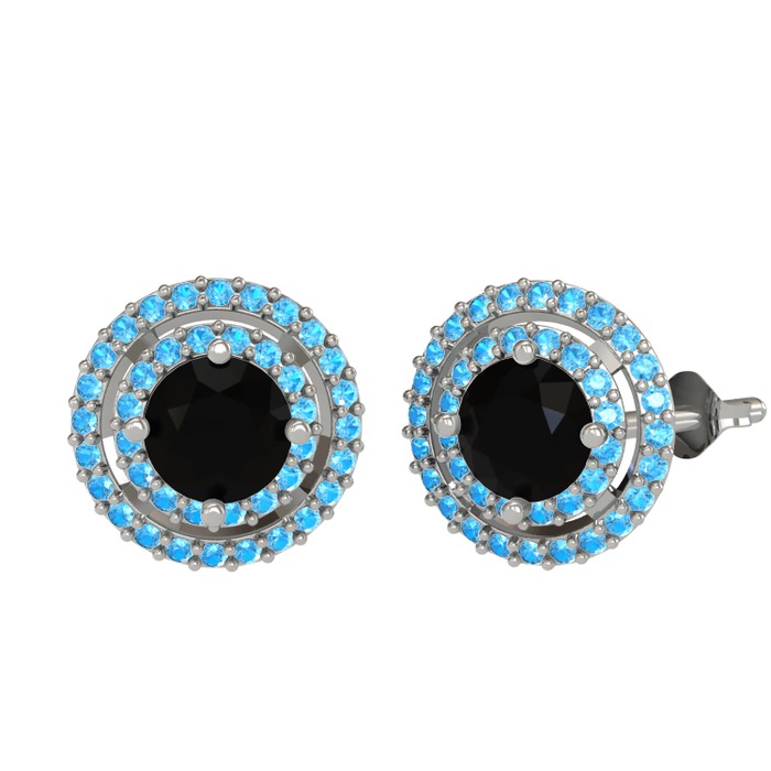 Siyah zirkon ve akuamarin 14 ayar beyaz altın küpe