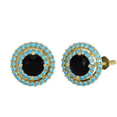 Siyah zirkon ve akuamarin 925 ayar altın kaplama gümüş küpe