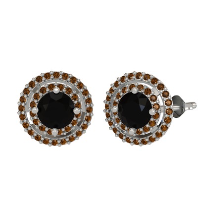 Siyah zirkon ve dumanlı kuvars 8 ayar beyaz altın küpe