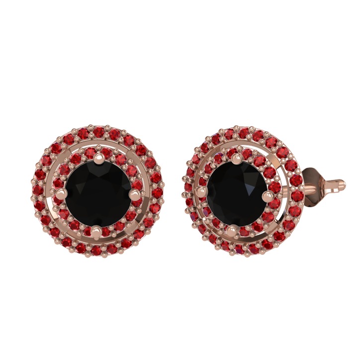 Siyah zirkon ve garnet 925 ayar rose altın kaplama gümüş küpe