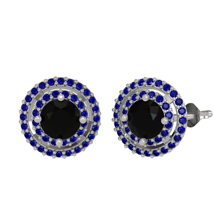 Siyah zirkon ve lab safir 14 ayar beyaz altın küpe