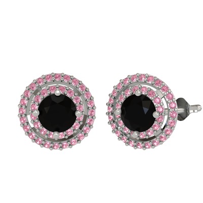 Siyah zirkon ve pembe kuvars 925 ayar gümüş küpe