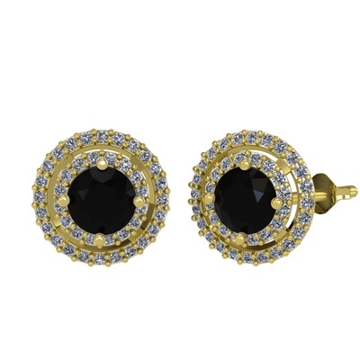 Siyah zirkon ve pırlanta 14 ayar altın küpe (0.702 karat)