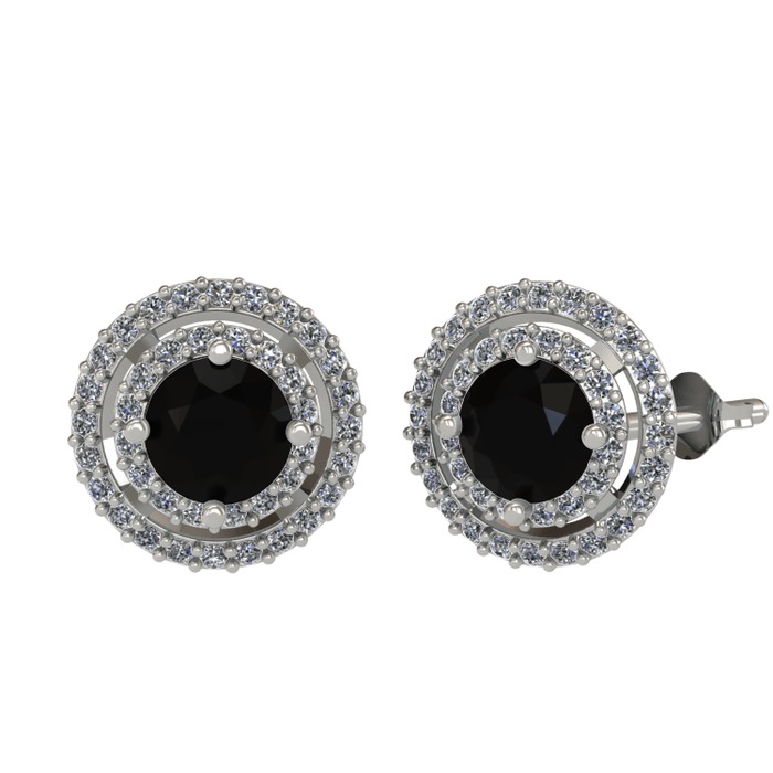 Siyah zirkon ve pırlanta 8 ayar beyaz altın küpe (0.702 karat)