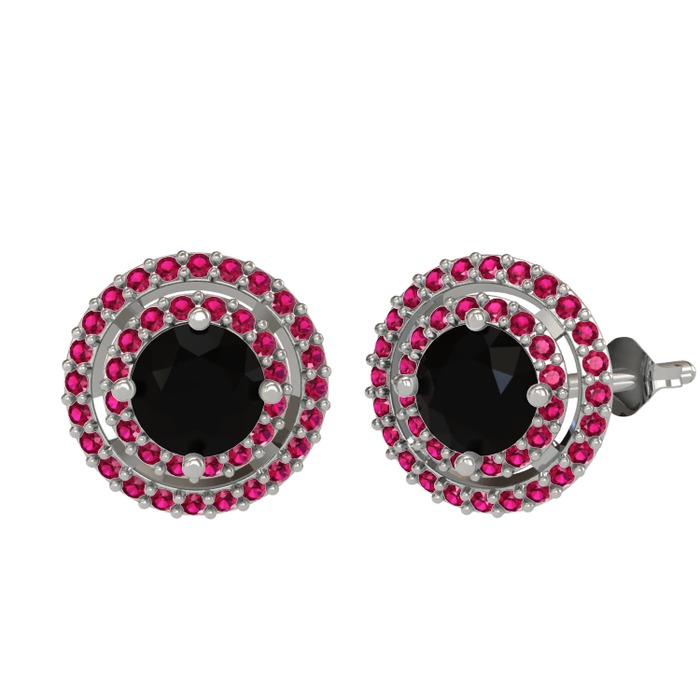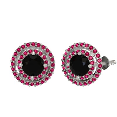 Siyah zirkon ve rodolit garnet 8 ayar beyaz altın küpe