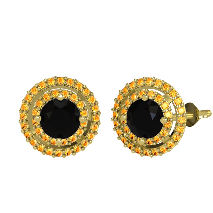 Siyah zirkon ve sitrin 8 ayar altın küpe