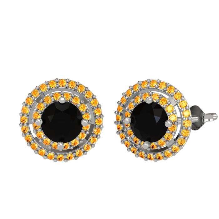 Siyah zirkon ve sitrin 8 ayar beyaz altın küpe