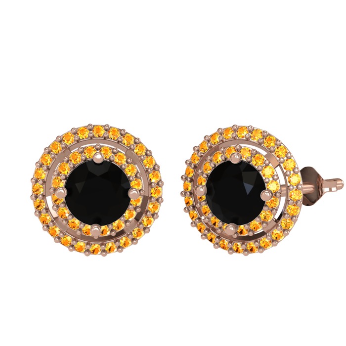 Siyah zirkon ve sitrin 925 ayar rose altın kaplama gümüş küpe