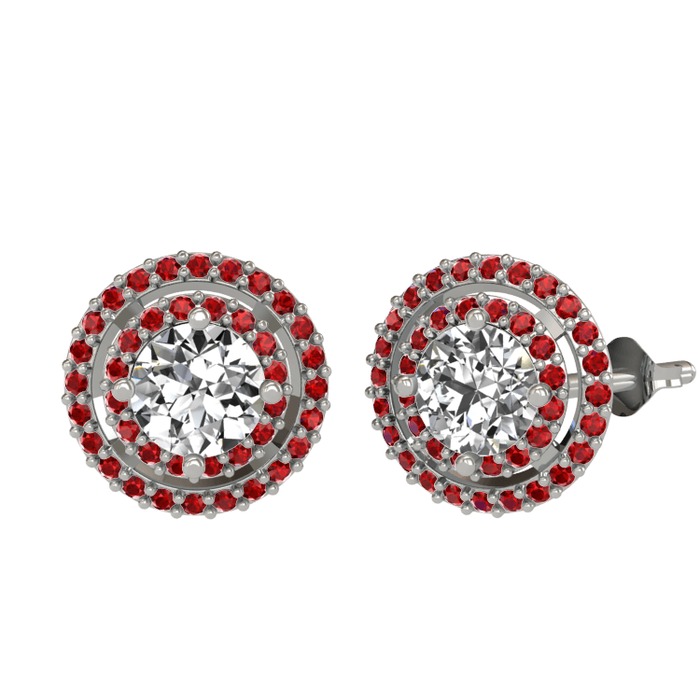 Swarovski ve garnet 14 ayar beyaz altın küpe