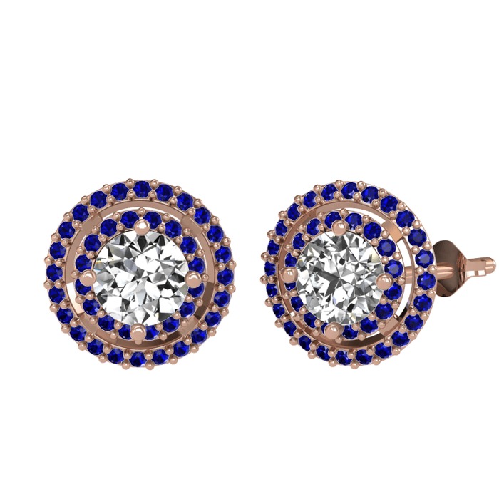 Swarovski ve lab safir 925 ayar rose altın kaplama gümüş küpe