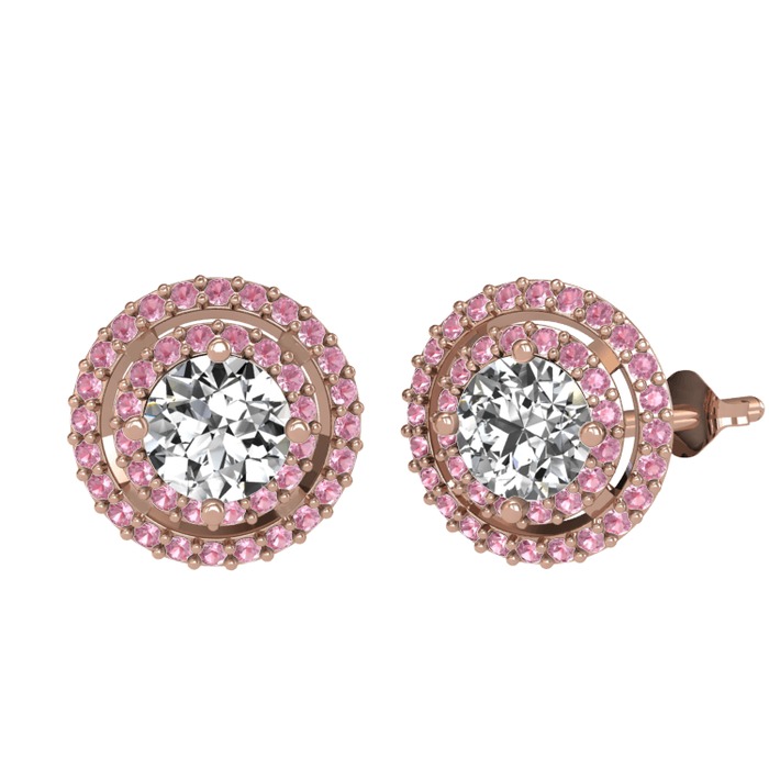 Swarovski ve pembe kuvars 925 ayar rose altın kaplama gümüş küpe