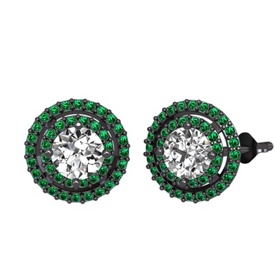Swarovski ve yeşil kuvars 925 ayar siyah rodyum kaplama gümüş küpe