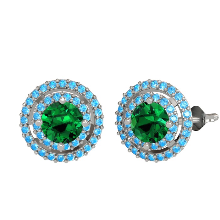 Yeşil kuvars ve akuamarin 14 ayar beyaz altın küpe