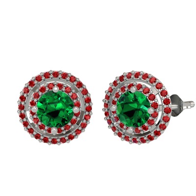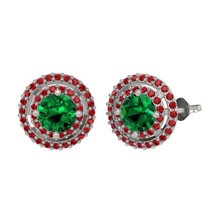 Yeşil kuvars ve garnet 8 ayar beyaz altın küpe