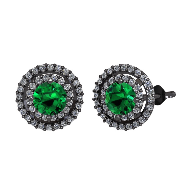 Yeşil kuvars ve pırlanta 925 ayar siyah rodyum kaplama gümüş küpe (0.702 karat)
