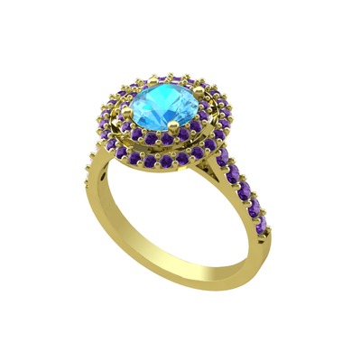 Akuamarin ve ametist 8 ayar altın yüzük