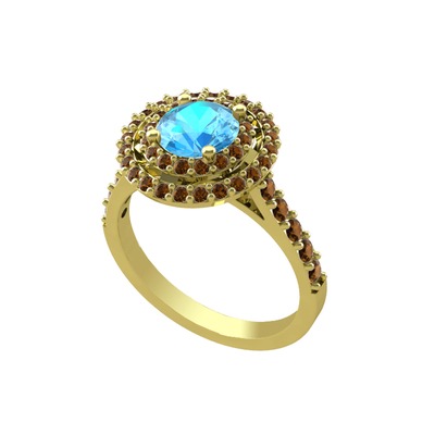Akuamarin ve dumanlı kuvars 8 ayar altın yüzük