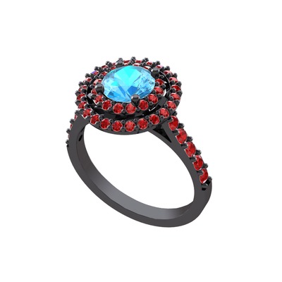 Akuamarin ve garnet 925 ayar siyah rodyum kaplama gümüş yüzük