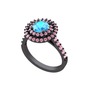 Akuamarin ve pembe kuvars 925 ayar siyah rodyum kaplama gümüş yüzük