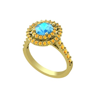 Akuamarin ve sitrin 18 ayar altın yüzük