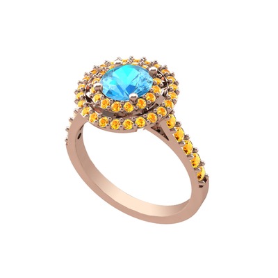 Akuamarin ve sitrin 18 ayar rose altın yüzük