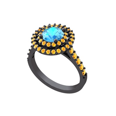 Akuamarin ve sitrin 925 ayar siyah rodyum kaplama gümüş yüzük