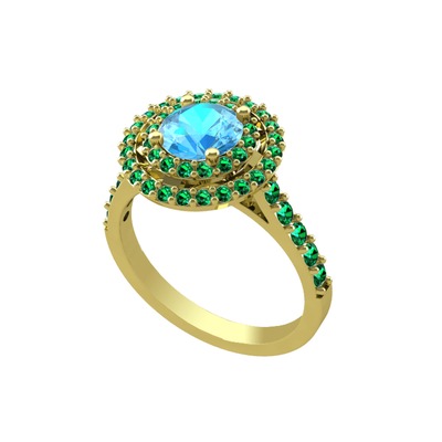 Akuamarin ve yeşil kuvars 925 ayar altın kaplama gümüş yüzük
