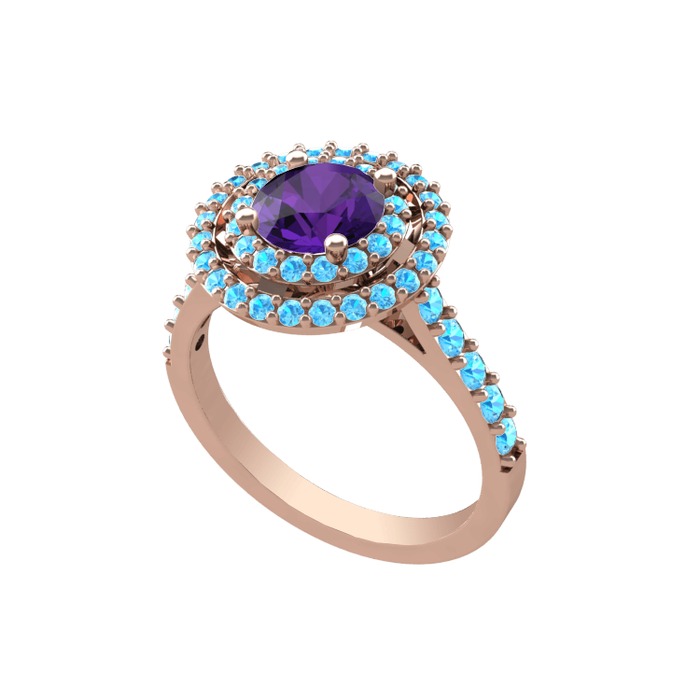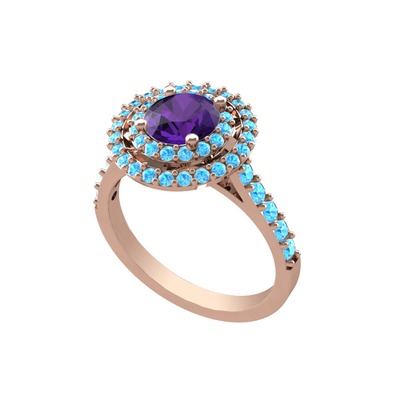 Ametist ve akuamarin 8 ayar rose altın yüzük