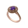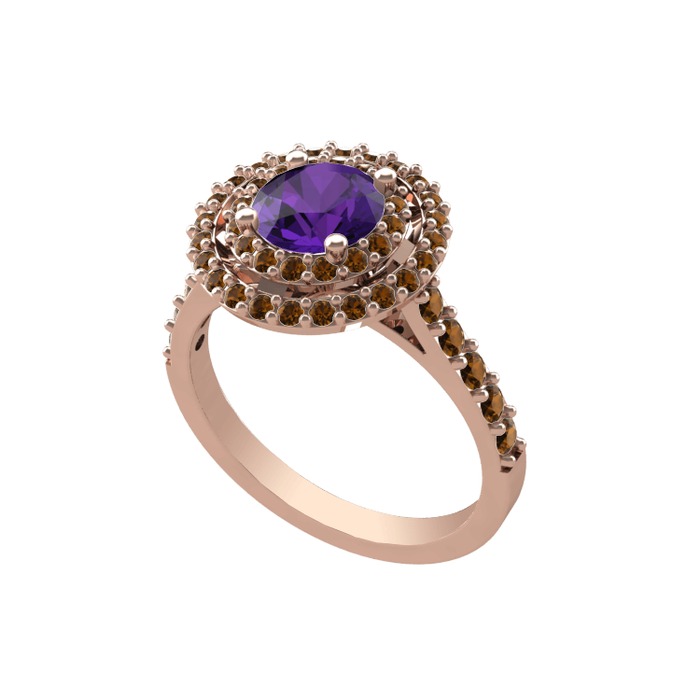 Ametist ve dumanlı kuvars 925 ayar rose altın kaplama gümüş yüzük