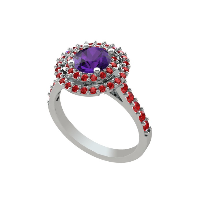 Ametist ve garnet 8 ayar beyaz altın yüzük